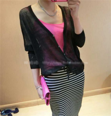 纯亚麻薄短款针织开衫女百搭 蝙蝠袖宽松薄防晒外搭